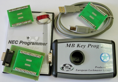 Программатор Mercedes NEC KEY Programmer ver. 10/60 предназначен для комплексного решения задач по проверке, стиранию и программированию инфракрасных ключей, так называемых "рыбки" для автомобилей Мерседес. Этот программатор позволяет проверить все параметры ключа, за исключением проверки радиоканала. Используя специальную плату-переходник (поставляется в комплекте), Вы можете производить стирание и запись процессоров NEC, которые используются в ключах нового образца (маленькие "рыбы"). Выполнив только стирание процессора и запаяв его обратно на плату ключа, Вы получаете "предподготовленный" ключ, который можно в дальнейшем записать программатором Mercedes NEC KEY Programmer по ИК-каналу. Также по ИК можно записать ключ старого образца (большая "рыба"), если предварительно произвести стирание процессора Motorola с использованием подходящего программатора, например Программатор X-PROG-M, UPA-USB. После приобретения программатора Mercedes NEC KEY Programmer для расширения возможностей работы с ключами Mercedes дополнительно можно приобрести программные продукты MB Keyprog2, MB Keyprog Lite, MB Key Restorer без необходимости замены или обновления основного блока программатора. Вам достаточно будет только оплатить и ввести лицензионный ключ, полученный от нас по e-mail вместе с новой программой. Для расчета/калькулирования данных для записи в процессор NEC ключа по прошивке блока замка EIS(EZS) необходимо использовать MERCEDES KEY ONLINE GENERATION. Оплачивается дополнительно!