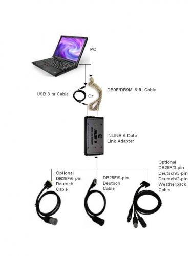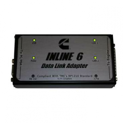 Сканер для диагностики двигателей Cummins INLINE 6 спроектирован для диагностики и обслуживания всех двигателей марки Cummins. Последняя разработка дилерского оригинального прибора (OEM) Cummins, является единственным прибором, способным на 100% выполнять поддержку как последних, так и будущих двигателей Cummins - например: Cummins Insite, Cummins PowerSpec и Cummins Calterm. Cummins INLINE 6 обрел более защищенный от внешних воздействий корпус и стал более скоростным чем адаптер старого поколения - Cummins Inline 5. Кроме того Cummins Inline 6 в полной мере поддерживает стандарт RP1210, что позволяет его использовать в качестве универсального сканера с другим ПО, поддерживающим данный стандарт ( Detroit DDL, Caterpillar ET и т.п.). Cummins Inline 6 теперь лидер и новатор не только в изготовлении высокотехнологичных двигателей (Cummins - основной производитель дизельных двигателей лёгких и лёгких грузовиков, дизельных двигателей для электростанций, силовых установок морского и речного транспорта, автобусов и т.д.), и кроме того в области транслирования данных о производстве сервисных инструментов для дизельных двигателей. Допустимая температура работы в окружающей среде -40° to +85° C. Cummins Inline 6 полностью совместим с различными возможностями последней ECMS Cummins и другими программами компании Cummins. INLINE 6 способен подключаться к ПК через 9-pin разъем и через USB. Cummins INLINE 6 - мультимарочный автосканер, подключаемый к транспортным средствам при помощи протокола SAE J1587/J1708 и два канала CAN/J1939. Функциональные возможности Cummins INLINE 6: